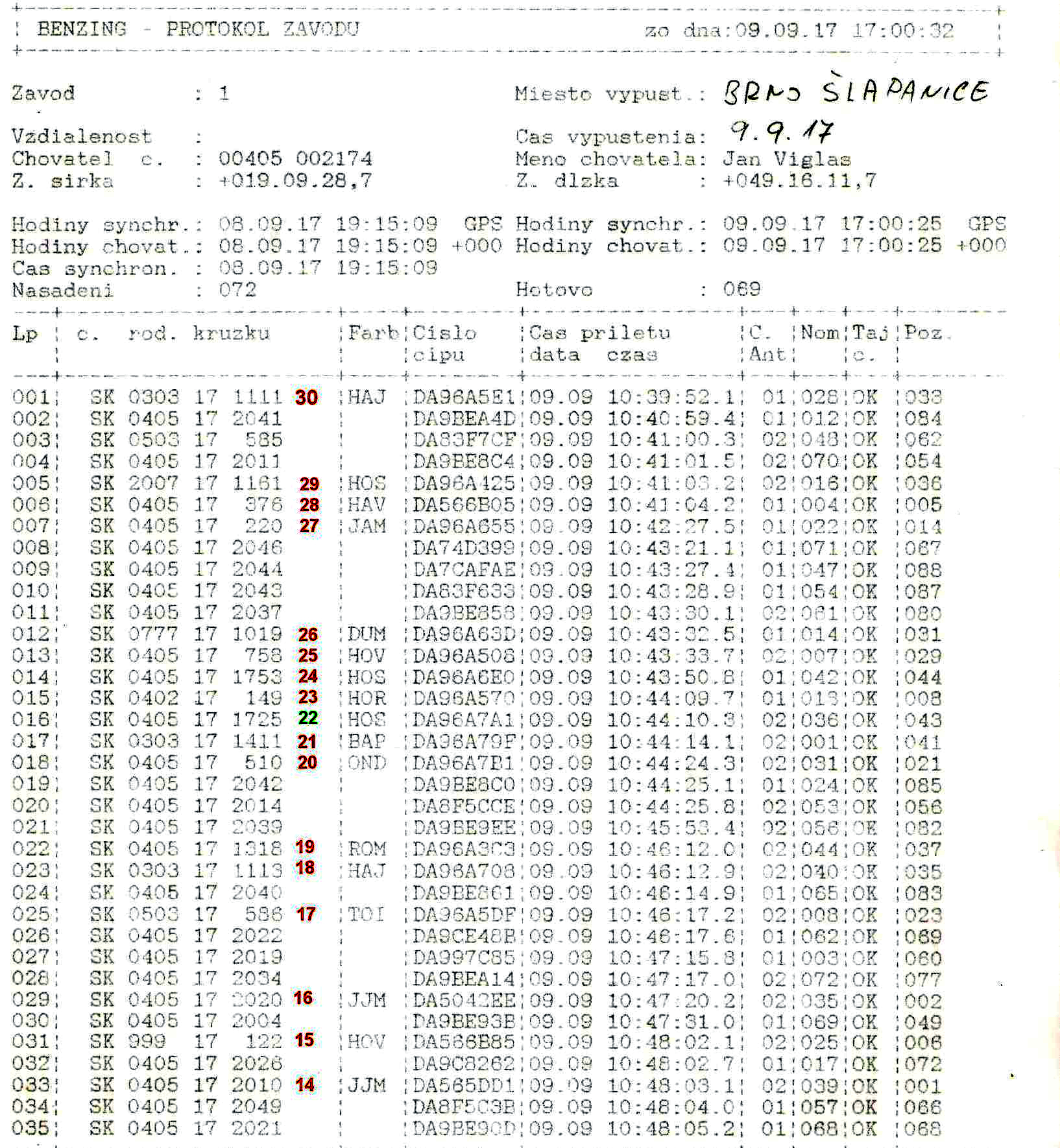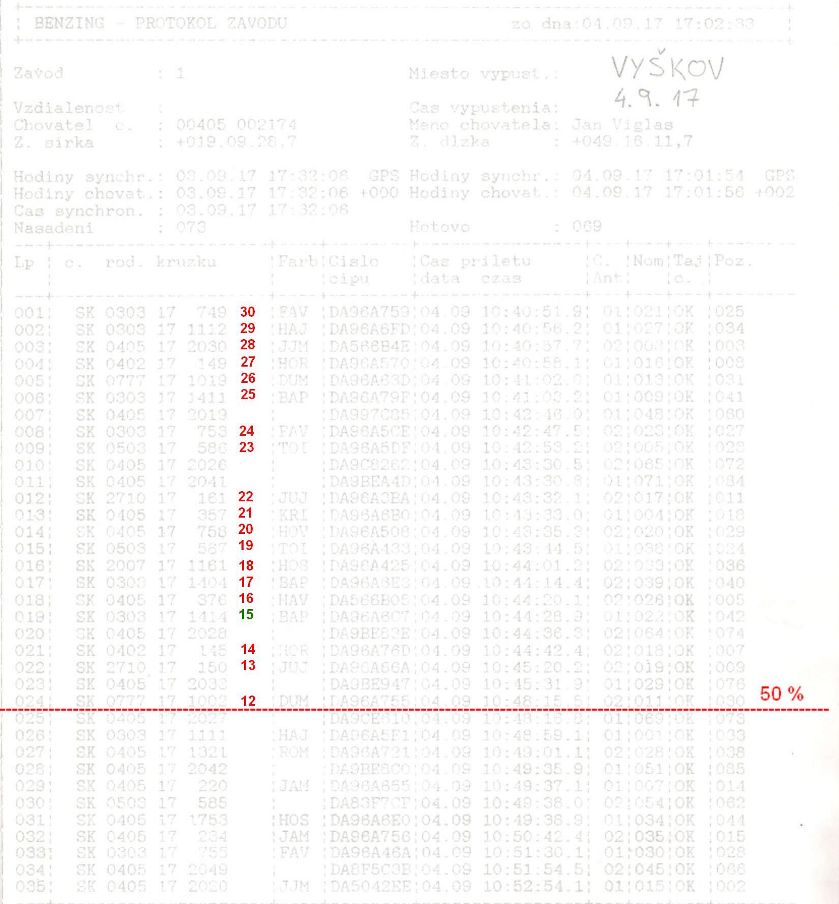 14.10.2017 košovanie na pretek Plzeň - 11 chovateľov - nasadených 277 holubov